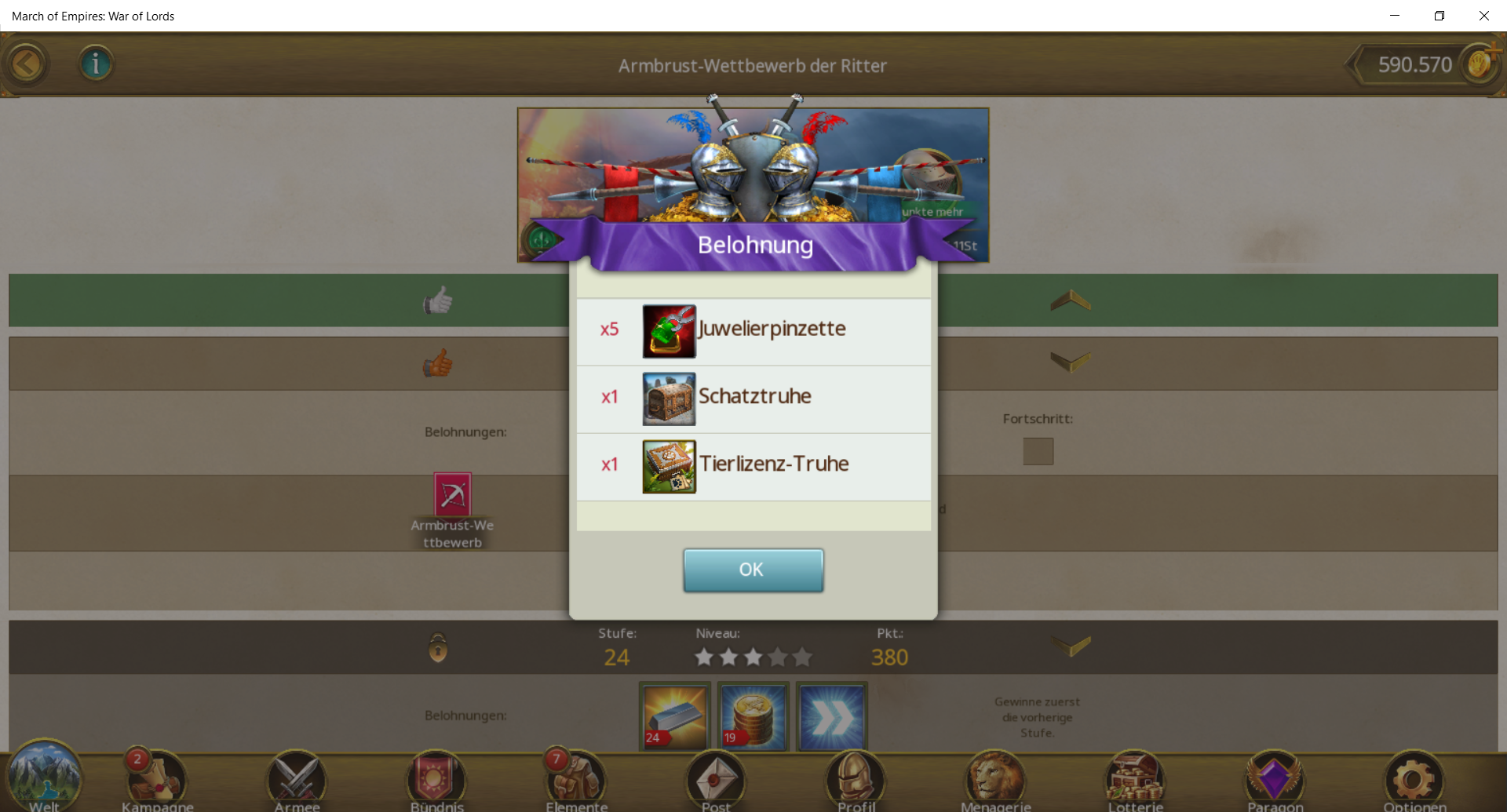 Grand Chevaliers Crossbow Contest - Reaching Level 23 - March Of Empires - War Of Lords