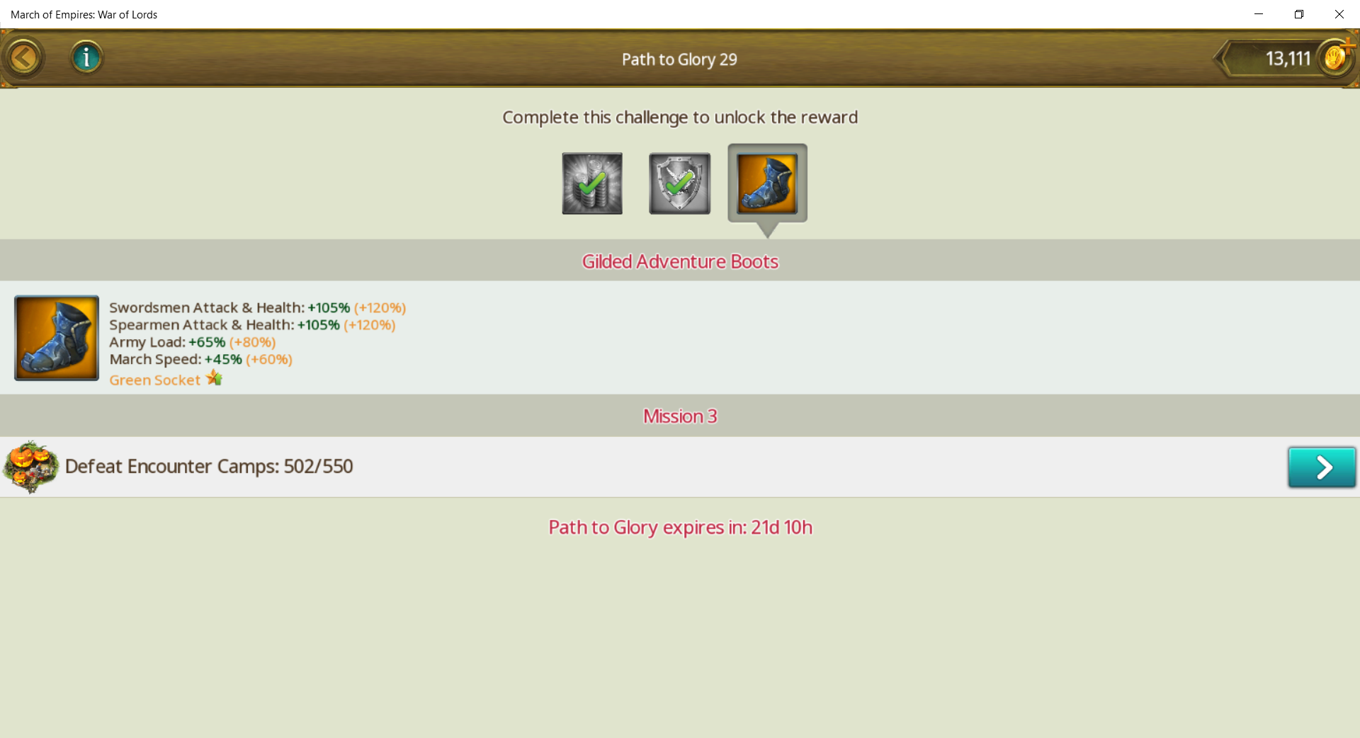 Defeating 550 Encounter Camps - Path to Glory - March Of Empires - War Of Lords
