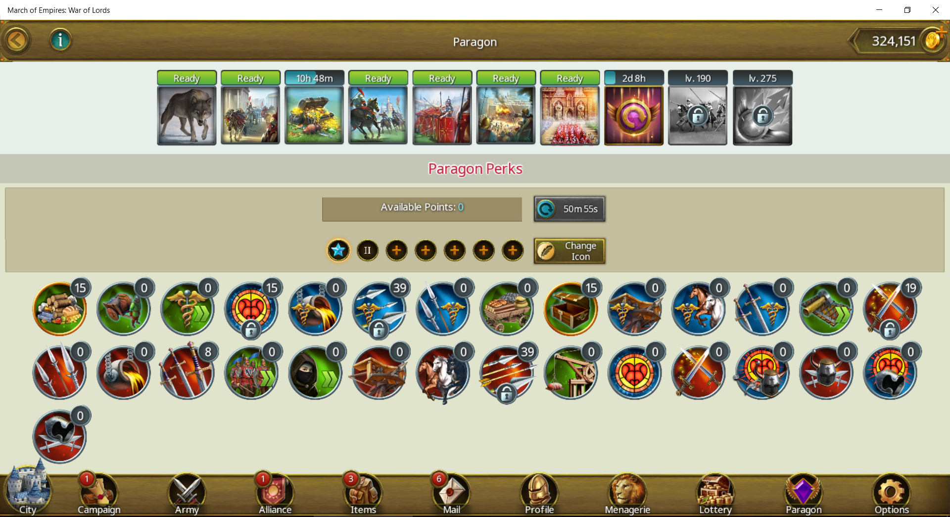 NEW Paragon Konfiguration - With paragon level 150 it is possible to set 39 experience points to archers attack and health. Until level 149 you can set only 29 points. So, I removed a few points from swordsmen attack and health and gave them to the bowsmen.