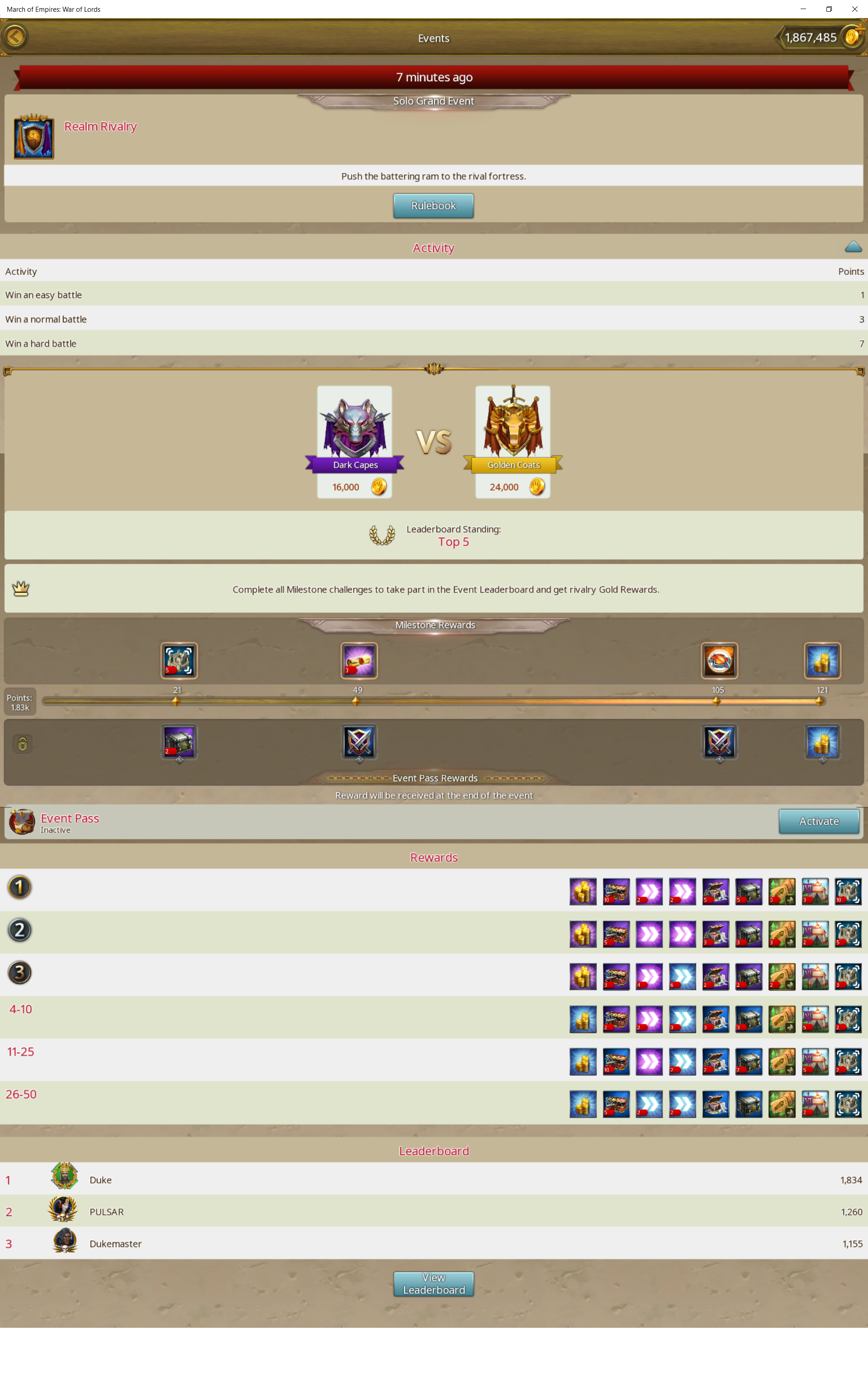 Winning Battering Ram with all of my 3 castles (IDs) - March Of Empires - War Of Lords