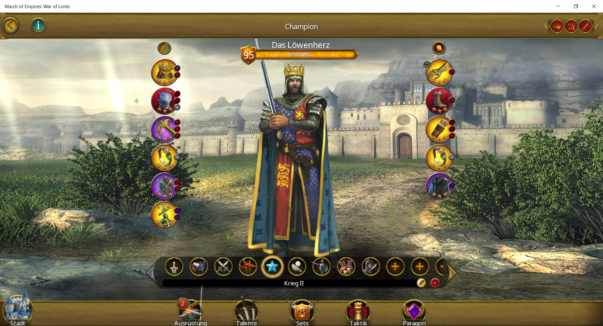 Raragon configuration on the higher slot is: 39% army attack, 39% army health, 39% archers attack, 17% archers health, 19% attack vs. encounters, 15% health vs. encounters.