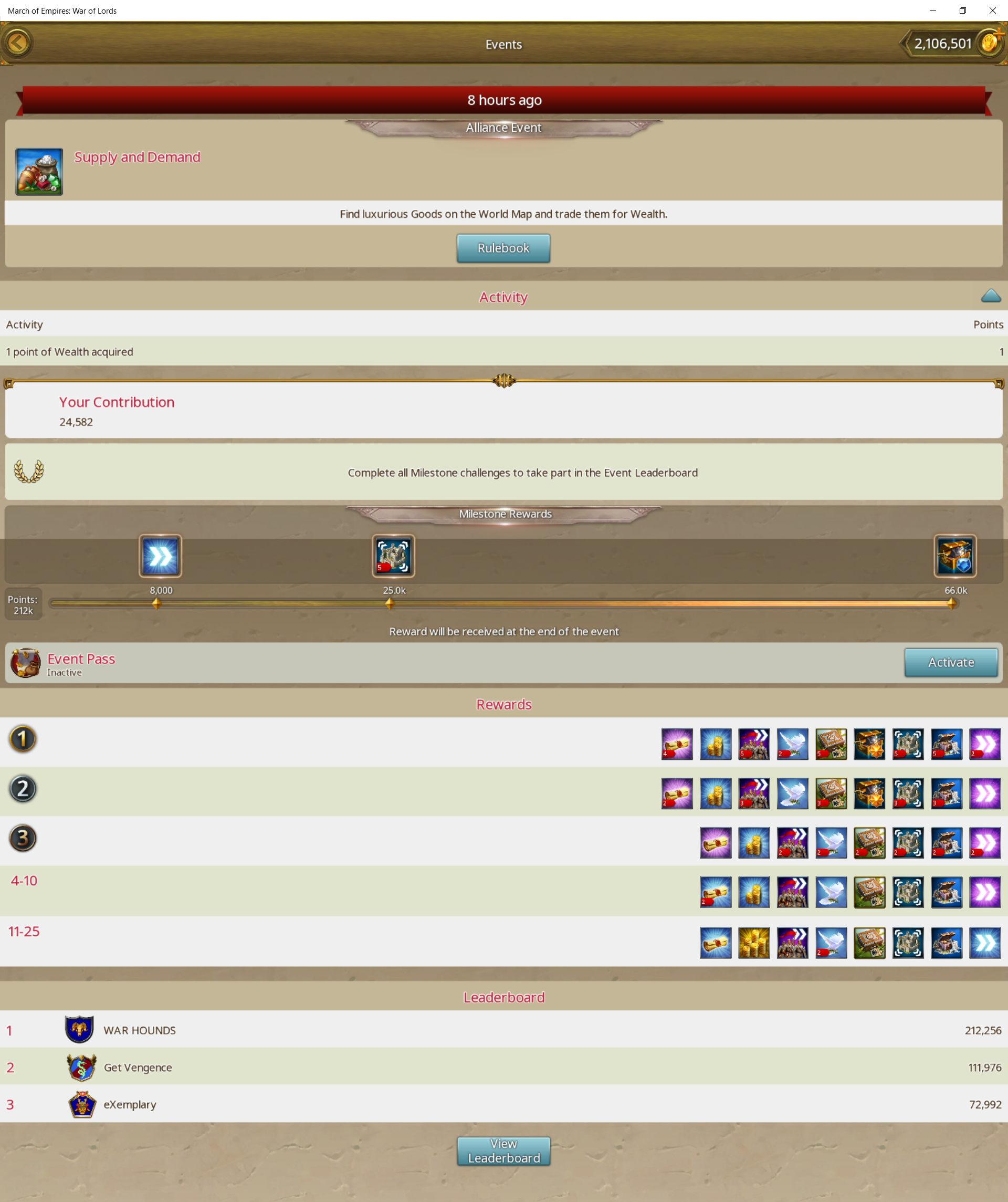 W-H alliance winning event – Supply and Demand – March Of Empires – War Of Lords
