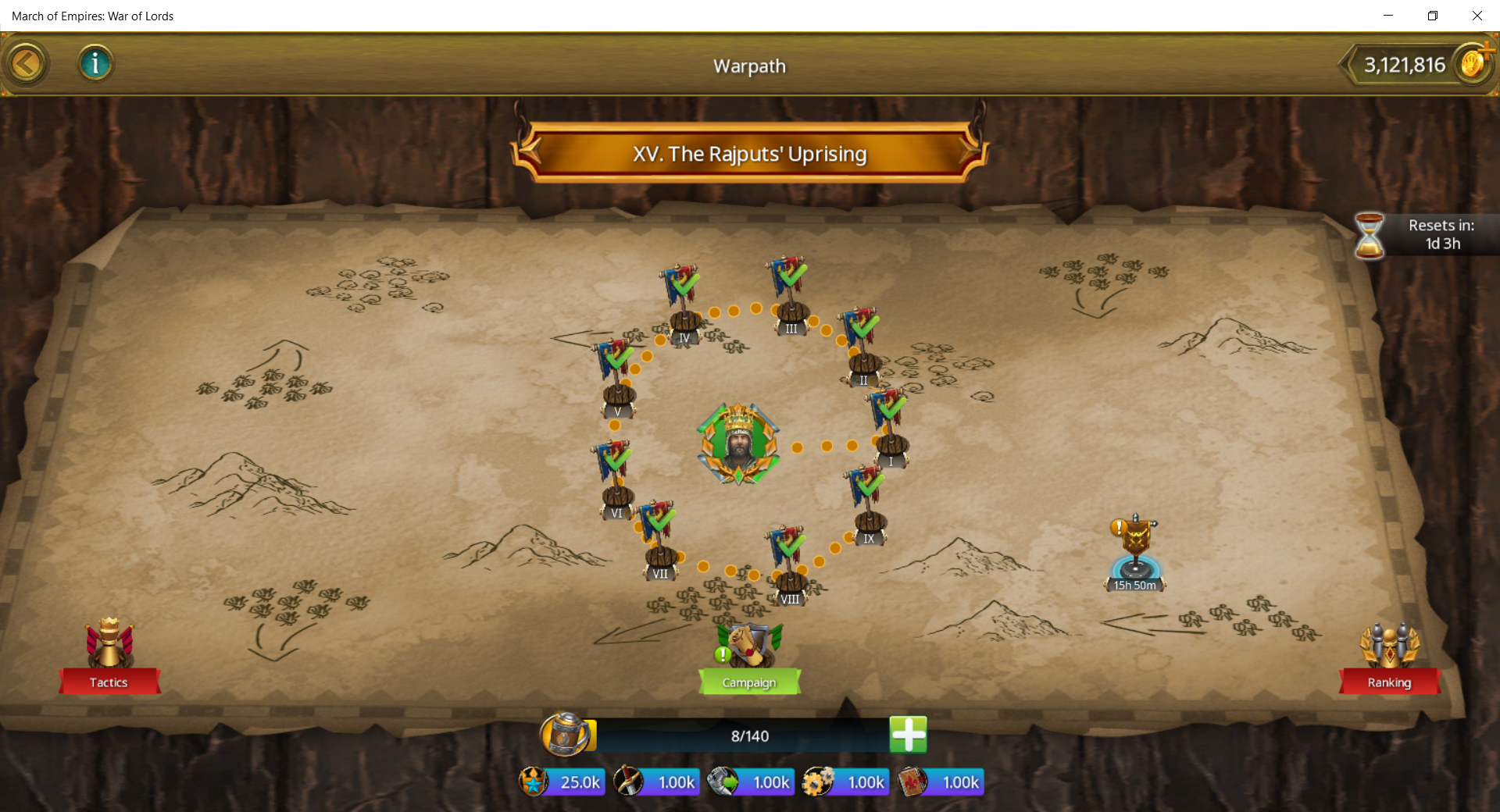 Successfully completed Warpath Campaign Level 15 for the 2nd time – March Of Empires – War Of Lords