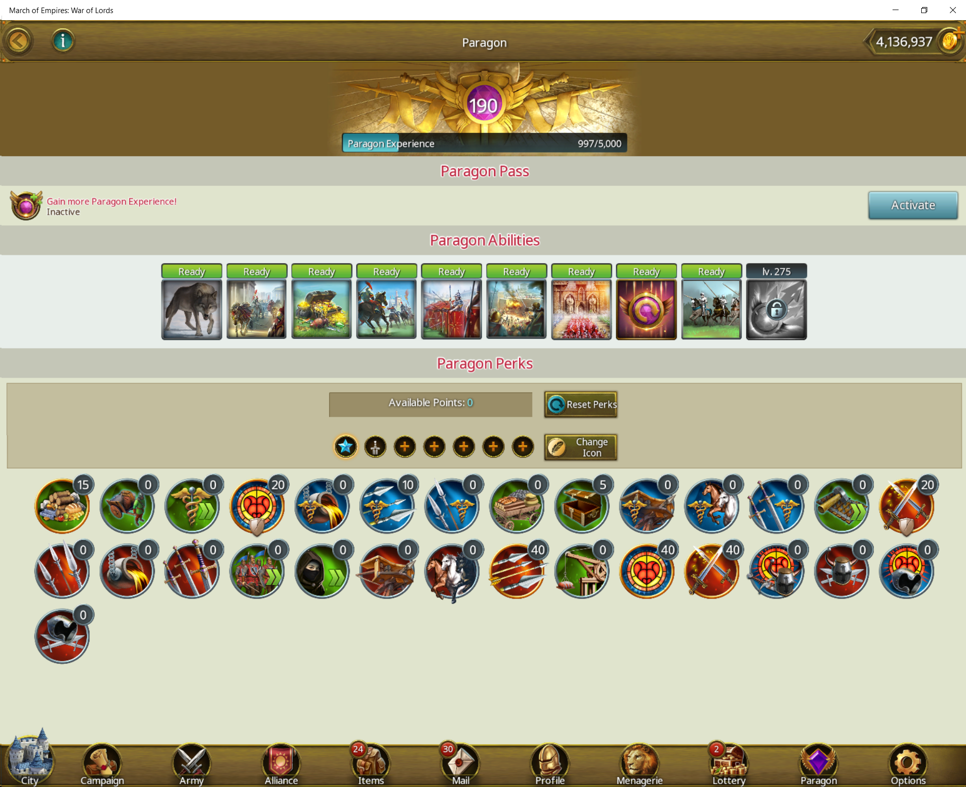 Paragon 190 Configuration with maximum RSS-Income+Capacity – March Of Empires – War Of Lords