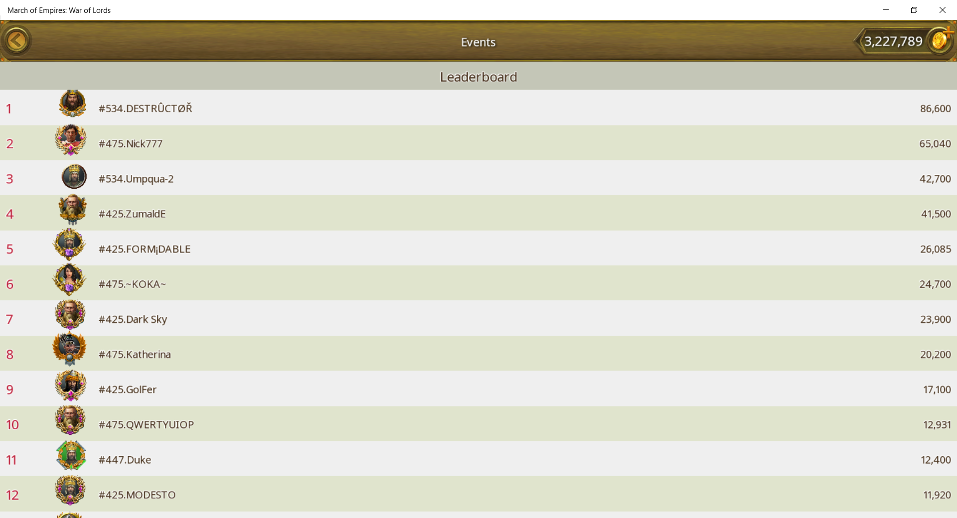 Amazing 11th in leaderboard of lottery event (all realms) – March Of Empires – War Of Lords
