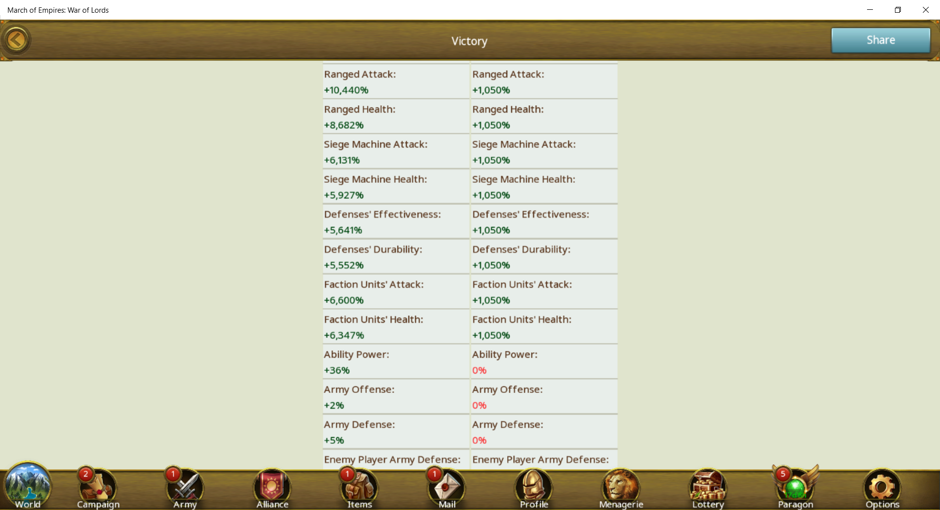 Attack bonus of archers reaching 10.000 percent – March Of Empires – War Of Lords